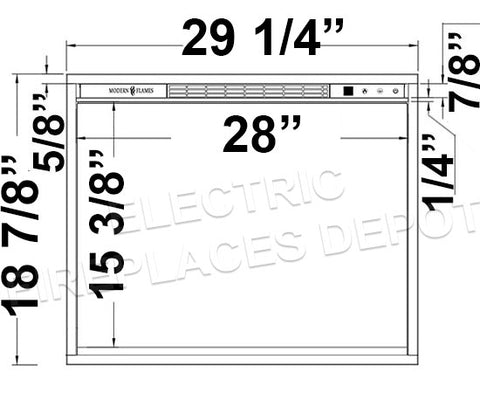 Fireplace: 29 1/4”W x 18 7/8”H x 9 1/4”D