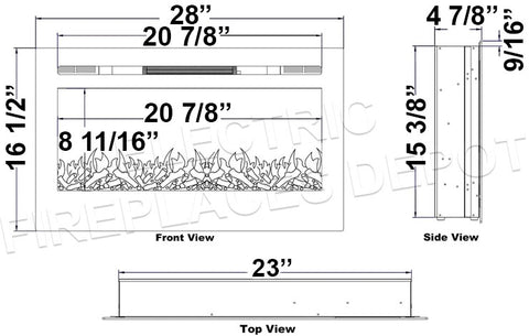 Fireplace: 28″W x 16 1/2″H x 4 7/8″D